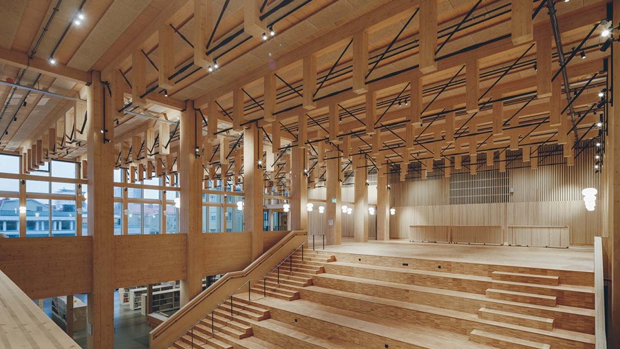 Sara Culture House was opened in September 2021. The multi-award-winning building, with its 20 floors, is one of the world’s tallest wooden buildings. The building houses six theatre stages, a city library, two art galleries, a conference centre, restaurants and a hotel. Estimates suggest that the building will sequester around 9,000 tonnes of carbon dioxide during its lifetime.